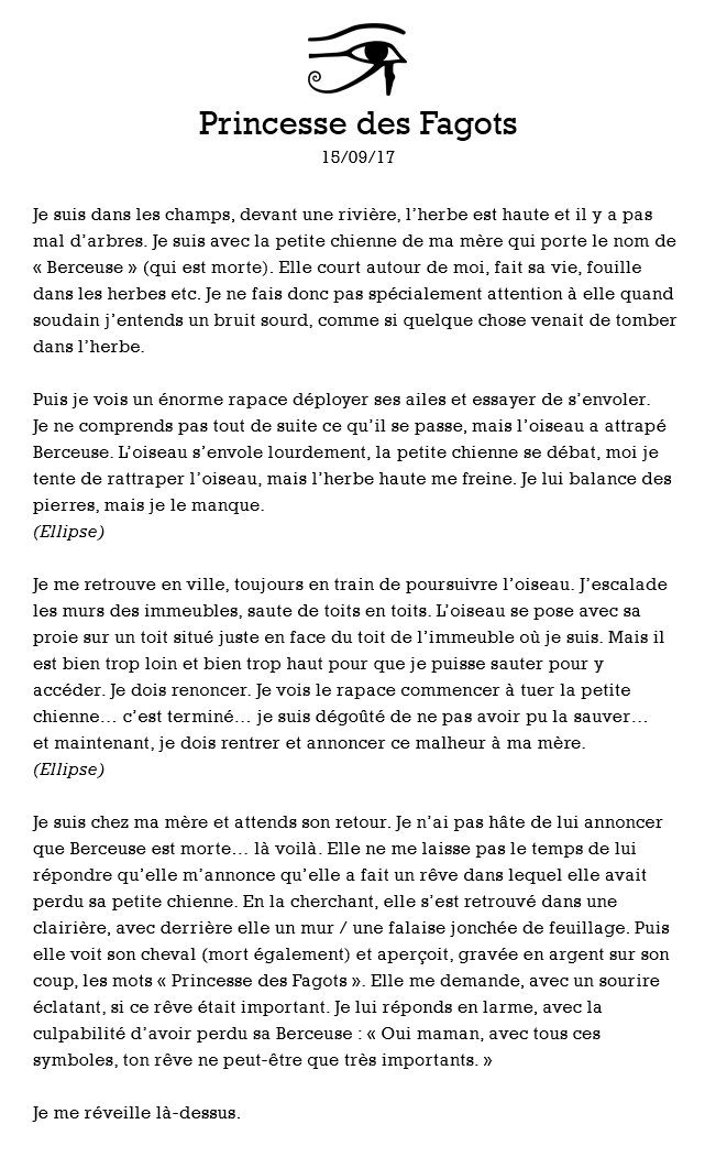 Le 8 septembre, je publie le récit du rêve.
